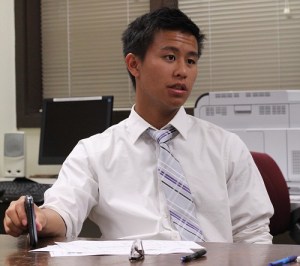 Student Associated Council President Taylor Valmores discusses issues involving the student body, recruitment, and voting inside. Photo by Evan E. Duran.