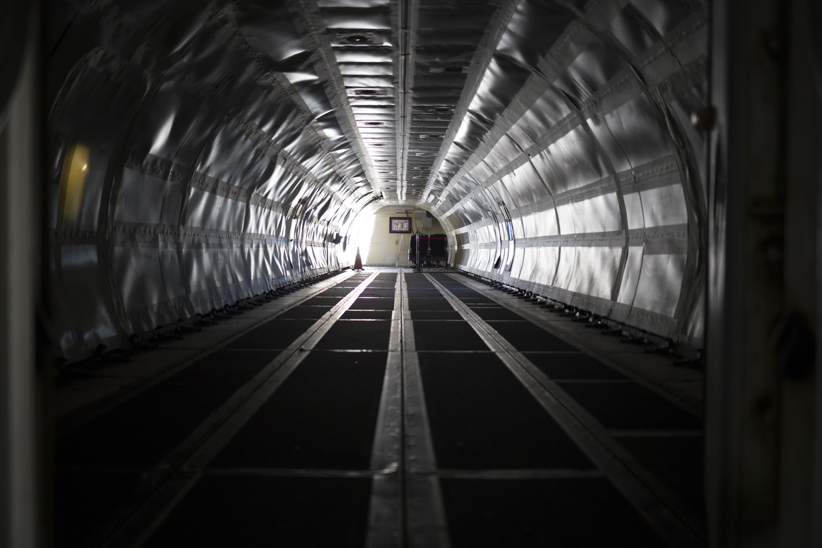 As students walk up into Gideon’s insides — a hollowed-out cargo area, void of seats, that was once used to house large shipments — Madden explains that the orange, cylindrical units to the right are the “black boxes” always talked about after plane crashes.