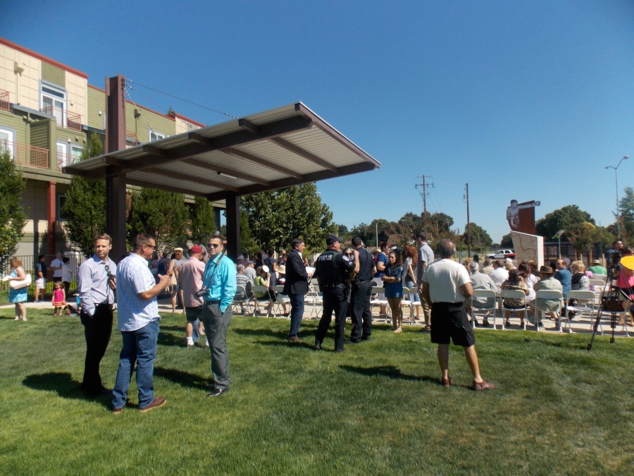 on the walkway behind the audience (which was in the picnic area) facing away from W. Cap